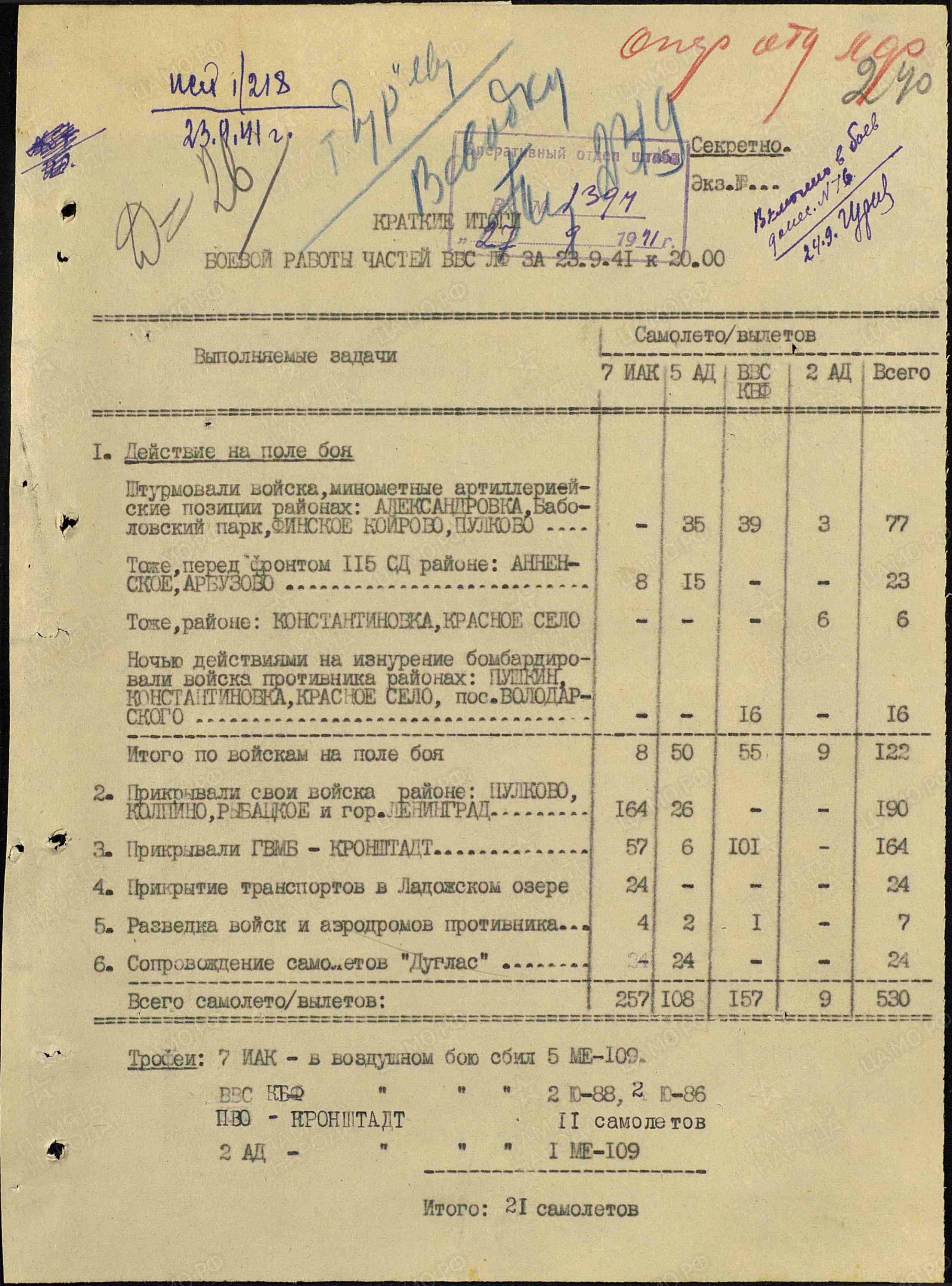 Всего в течение дня летчики 5-го и 71-го иап совершили на отражение 75 боевых вылетов