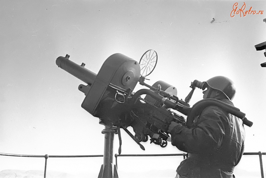 Или эсминец "Сердитый":На 1944 г.: 4 – 130/50-мм Б-13 – 2с, 2 – 76,2-мм 34К, 2 – 45/46-мм 21 К, 2 – 37-мм 70К; 4 – 20-мм Эрликон; 3 – 12,7-мм ДШК, 1 – 12,7-мм Кольт спаренный. 1 – 7,62-мм М-1, 4 – 7,62-мм ДП. http://ussrfleet.1939-45.ru/esm_pr_7u_serd.php