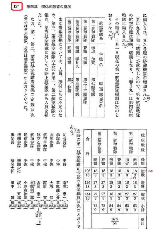 - комэски и ротные командиры (飛行隊長兼分隊長 хикотайтё кэн бунтайтё) авиаБЧ Акаги (капитаны 3 ранга С. Итая и С. Мурата) освобождены от  исполнения обязанностей ротных командиров  (逸兼職 ицукэнсёку)