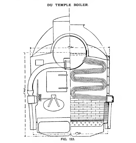 У ранних «Дю-Тамплей» давление было 12 атмосфер, потом появились котлы на 16 атмосфер, потом 20 (но в ту пору писали, что «безумные» итальянцы используют 23 атмосферы), потом появились котлы на 40 атмосфер, но… все это позже.