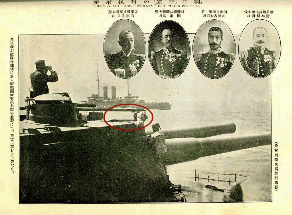 На компасной площадке тяжело ранен «мичманский кандидат» (так в русском переводе "Мэйдзи") Сирахамэ, помощник (?) старшего штурмана.