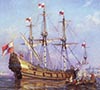 Там (на картине) изображено два корабля и несколько посудин, похожих как на галеры, так и на струги или речные барки.